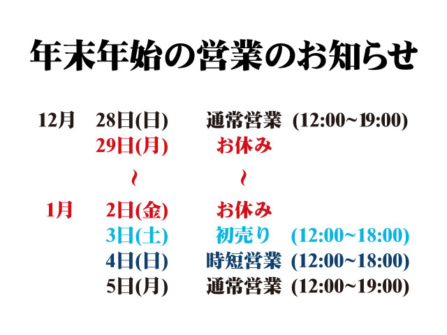 3日の12時オープンです!ご来店、心よりお待ちしております。